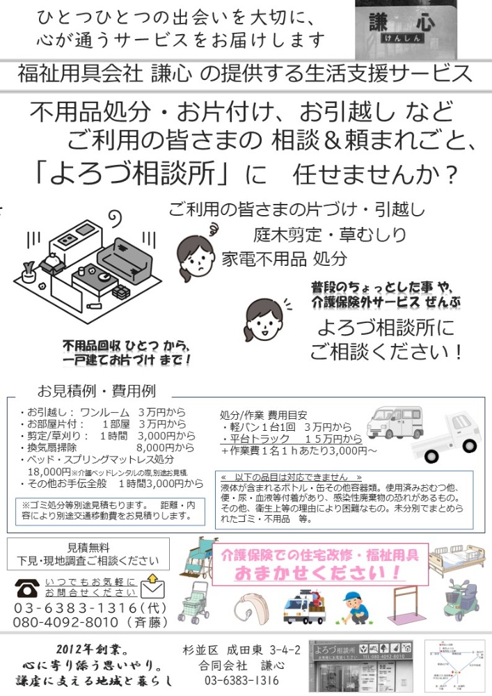 ご利用者さまの相談&頼まれごと 「よろづ相談所」に任せませんか?